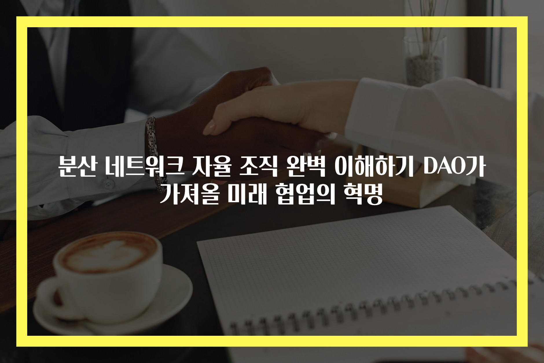 ๊ทธ๋ ๋ค๋ฉด ๋ถ์ฐ ๋คํธ์ํฌ ์์จ ์กฐ์ง์ด ๊ฐ์ ธ์ค๋ ๋ฏธ๋ ํ์ ์ ํ๋ช ์ ์ด๋ค ๋ชจ์ต์ผ๊น์? DAO์ ์ด์ ์ ๋ฌด์์ด๋ฉฐ, ์ด๋ฅผ ํตํด ์ฆ๊ฐํ๋ ๊ธฐ์ ์ ํจ์จ์ฑ์ด๋ ํ์ ์ ์ธ ๊ด๋ฆฌ ์ฒด๊ณ๊ฐ ์ด๋ป๊ฒ ์๋ํ๋์ง๋ฅผ ์ดํด๋ณด๊ฒ ์ต๋๋ค. ์ด๋ฌํ ๋ชจ๋ ์ฌํญ์ DAO๋ฅผ ์ดํดํ๋ ๋ฐ ๋งค์ฐ ์ค์ํฉ๋๋ค.