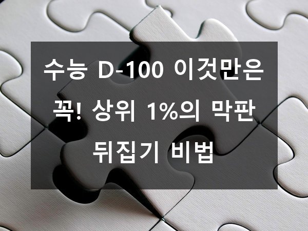 ์๋ ํ์ธ์, ์ํ์ ์ฌ๋ฌ๋ถ! โณ ์๋ฅ์ด ๋ฑ 100์ผ ๋จ์๋ค๋ ์ฌ์ค์ ๋ฒ์จ ๋ง์์ด ์กฐ๊ธํด์ง์๋์? ๐ฐ ์ฌ์ค, ๋จ์ 100์ผ์ ๊ธด ์ฌ์ ์ ๋ง๋ฌด๋ฆฌ๋ฅผ ์ง๋ ๊ณจ๋ ํ์์ ๋๋ค. ์ด ๊ธฐ๊ฐ ๋์ ์ผ๋ง๋ ํจ์จ์ ์ผ๋ก ๊ณต๋ถํ๋๋์ ๋ฐ๋ผ ์์ 1%๋ก ๋์ฝํ ์๋ ์๊ณ , ์์ฌ์ด ๊ฒฐ๊ณผ๋ฅผ ๋ง์ ์๋ ์๋ต๋๋ค. ์ค๋์ ‘์๋ฅ D-100, ์ด๊ฒ๋ง์ ๊ผญ!’์ด๋ผ๋ ์ฃผ์ ๋ก ์์ 1%๊ฐ ์ค์ฒํ๋ ๋งํ ๋ค์ง๊ธฐ ์ ๋ต๊ณผ ์ค์ ํ์ ๋ฑ๋ฑ์ด ์๋ ค๋๋ฆด๊ฒ์! ๐