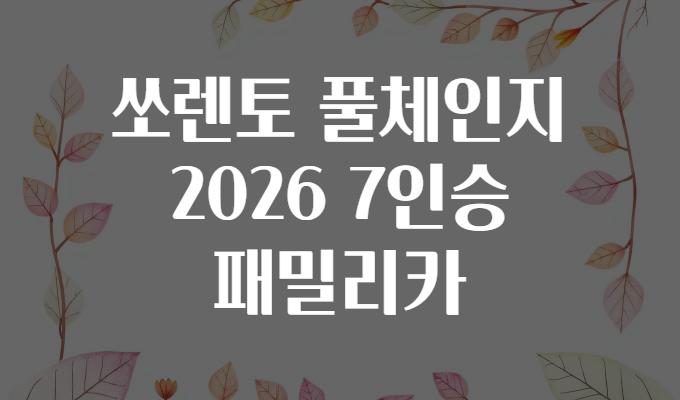 “๋ด๋ ์ฏค์ ๊ฐ์กฑ๊ณผ ํจ๊ป ํธ์ํ๊ฒ ํ ์ ์๋ 7์ธ์น ๊ฐ์กฑ์ฐจ๋ฅผ ๋ฐ๊ฟ์ผ ํ๋๋ฐ… ๊ณผ์ฐ ์๋ ํ ํ์ฒด์ธ์ง ๋ชจ๋ธ์ ์ด๋จ๊น?”๐ค ๋ง์ ๋ถ๋ค์ด ๊ณ ๋ฏผํ๋ ๋ฐ๋ก ๊ทธ ์ง๋ฌธ์ด์ฃ . 2026๋ ํ ์๋ ํ ๋ ์์ ํ ํ์ฒด์ธ์ง(์์ ๋ณ๊ฒฝ)๋ก ์๋กญ๊ฒ ๋์์ ํจ๋ฐ๋ฆฌ์นด๋ก์์ ๋งค๋ ฅ์ ํ๊ป ๋์ด์ฌ๋ ธ์ต๋๋ค. ์ด๋ฒ ๊ธ์์๋ ์๋ ํ 2026 ํ์ฒด์ธ์ง 7์ธ์น ๋ชจ๋ธ์ ํน์ง๋ถํฐ ๊ฐ์กฑ์ฐจ๋ก์ ์ค์ ํ์ฉ ํ, ์ฌ์ ์์ฝ๊ณผ ๊ตฌ๋งค ์ ์์์ผ ํ ์ ๋ณด๊น์ง ๊ผผ๊ผผํ ์๋ ค๋๋ฆด๊ฒ์! ๐