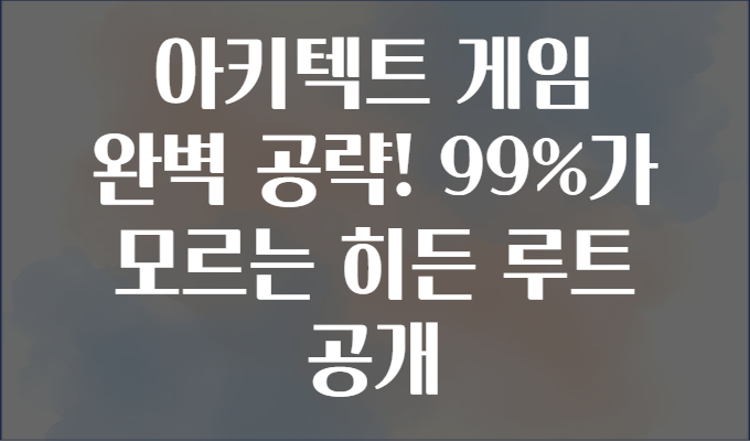 ์๋ ํ์ธ์, ๊ฒ์ ๋ง๋์ ์ฌ๋ฌ๋ถ! ๐ฎ ํน์ ‘์ํคํ ํธ(Architect)’ ๊ฒ์์ ํ๋ ์ดํ๋ฉด์ ๋งํ๋ ๊ตฌ๊ฐ, ๋๋ ์จ๊ฒจ์ง ๋ณด์์ด๋ ํน๋ณ ๋ฃจํธ๋ฅผ ๋ฐ๊ฒฌํ์ง ๋ชปํด ๋ต๋ตํ๋ ๊ฒฝํ ์์ผ์ ๊ฐ์? ์ค๋์ ๋ง์ ํ๋ ์ด์ด๋ค์ด ๋์น๊ณ ์๋ ํ๋ ๋ฃจํธ๋ฅผ ๊ณต๊ฐํ๋ฉฐ, ์๋ฒฝ ๊ณต๋ต๋ฒ์ ์๋ ค๋๋ฆฌ๋ ค๊ณ ํด์. ๊ฒ์ ๋ด ์จ๊ฒจ์ง ์์๋ฅผ ์ฐจ๊ทผ์ฐจ๊ทผ ํ์ ํ๋ฉด ํด๋ฆฌ์ด ์๊ฐ ๋จ์ถ์ ๋ฌผ๋ก , ๊ฒ์ ์ดํด๋์ ์ฌ๋ฏธ๊น์ง ์์นํ๊ฑฐ๋ ์! ๐