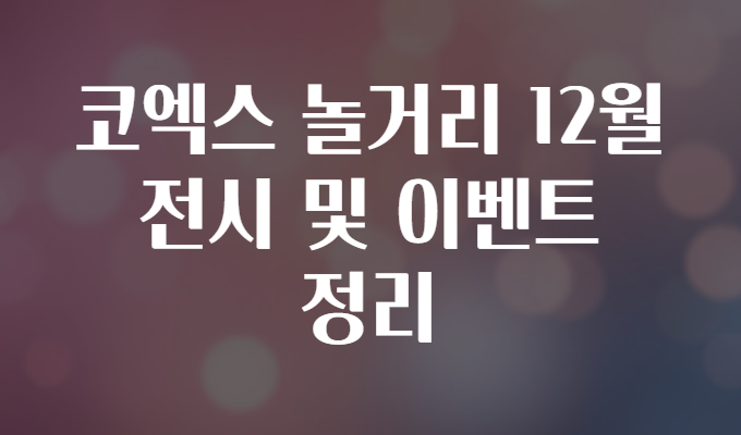 ์ฝ์์ค๋ 12์ ํ ๋ฌ ๋ด๋ด ํฌ๊ณ ์์ ์ ์ ๋ฐ ํ์คํฐ๋ฒ, ๊ณต์ฐ ๋ฑ ๋ค์ฑ๋ก์ด ํ์ฌ๊ฐ ํผ์ณ์ง๋๋ค. ๋ํ์ ์ผ๋ก ๋ค์ ํ์ฌ๋ค์ ์ฃผ๋ชฉํ์ธ์!